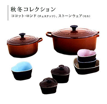 独自の配合により生まれる、他に類を見ない豊富なカラー・ヴァリエーションも魅力。無骨でそっけない鋳物のイメージを覆す商品群の中には、“インダストリアル・デザインの父”レイモンド・ローウィ作「コケル」や、イタリアの有名デザイナー、エンゾ・マリ作「ママ」などの傑作も。本社設立80周年を迎えた昨年は、記念として「コケル」が限定復刻されている。そんなスタイリッシュで遊び心いっぱいのエスプリは、季節限定カラーや新色にも反映されている。今年からは、“キッチンにもファッションを”というコンセプトでコレクションもスタート。第1弾となる06/07秋冬ではシックなダークブラウンを発表した。