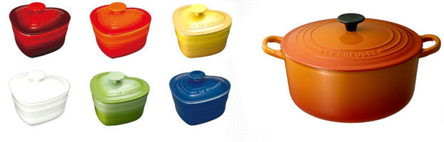 キュートなハートの形をしていても、機能も抜群のラムカン・ダムール。小さいので、ひとり暮らしの女性にも人気。調理用ツールとして、テーブルウエアとして、お砂糖やキャンディを入れるキャニスターとして、またアクセサリーなどの小物入れとしても大活躍。1250℃で焼き上げたストーンウェアだから、電子レンジでも安心。 オレンジが鮮やかなココット・ロンド。料理が大好きという人も、料理が苦手と言う人も、.友達を呼んで手料理を振舞いたくなるキッチンツール。日本で人気ナンバーワン・カラーは、台所をぱっと明るくしてくれる鮮やかなオレンジ。あまりに可愛いので、そのままテーブルにのせてもおしゃれ。