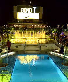 漆黒に包まれる大海原の中を、トップデッキから煌々と光るレーザー光線を放つロイヤル・プリセンスが悠然と進む。それはまるで眠ることを知らないラスベガスの街を思わせる。
