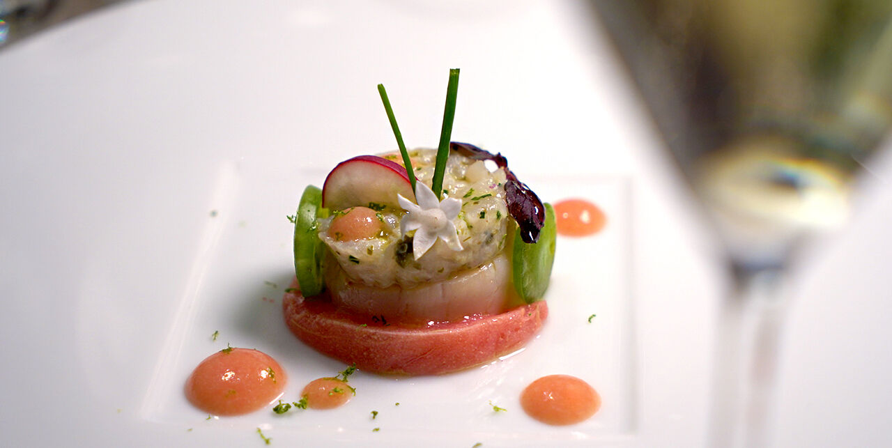 「帆立貝のガトー仕立て 国産有機グアバとライム風味」×「ポメリーアパナージュ ブリュット1874マグナム」