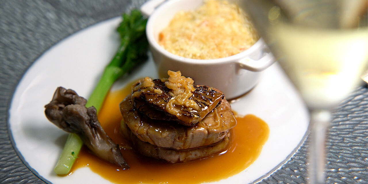 さらに「宮崎産 桜鱒のオーブン焼き セロリラブのムースリーヌ とんぶり入りシャンパーニュソース」には「クロ・ポンパドール ブラン・ド・ブラン2017」が。この日が世界初披露となるシャンパーニュはふくよかさ、エレガントさなどいずれも秀逸な素晴らしくかった。「このシャンパーニュはわたしが最高醸造責任者に就任した就任した2017年に収穫したシャルドネだけを使用した、大変思い入れのあるキュヴェです」とクレマン・ピエルロー氏。そしてメインの「フランス産仔牛フィレのソテ モリーユ茸ソース ポロ葱のグラタン<フランシュ・コンテ風>」には肉にも合う「クロ・ポンパドール2004 マグナム」。いずれもポメリーの奥深さと魅力を最大限に引き出す料理とのペアリングだった。
